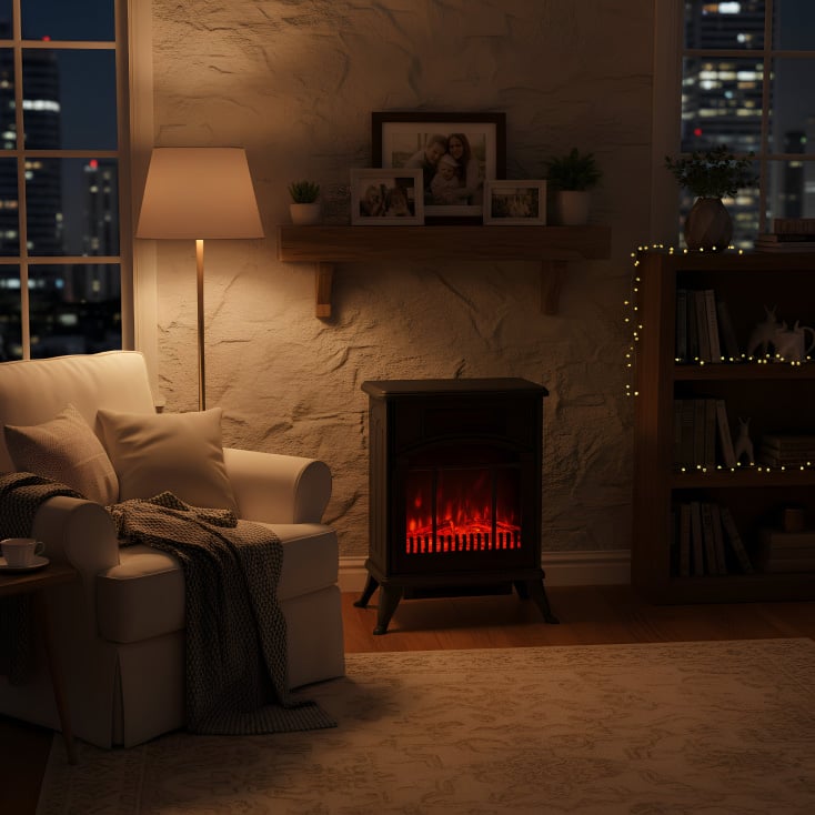 HOME Samostojeći Električni Kamin FKK 12 je kompaktan, lagan i izuzetno siguran izbor za kreiranje tople i prijatne atmosfere u Vašem domu, idealan za dnevne sobe, spavaće ili radne sobe.